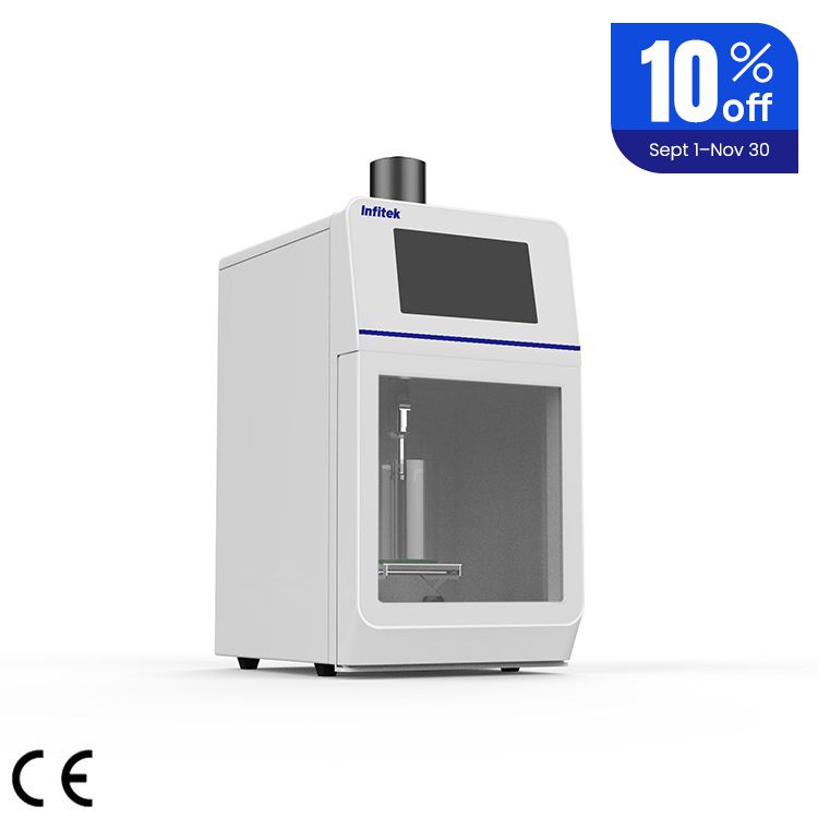 먼저, 공급 전력을 고주파 및 고전압 전력으로 변환합니다. 이 에너지는 트랜스듀서로 전달되어 고주파 기계적 진동으로 변환되고, 진폭 변위에 의해 증폭된 후 티타늄 합금 프로브에 의해 에너지가 집적됩니다. 이 에너지가 액체에 가해지면 강력한 압력파가 생성됩니다. 이 압력파는 수백만 개의 미세 기포를 형성하고, 이 기포는 고주파 진동에 의해 빠르게 성장한 후 갑자기 닫힙니다. 기포가 닫히면 액체 간의 충돌로 인해 강력한 충격파가 발생하고, 압력은 수천 기압에 해당합니다(즉, 초음파 캐비테이션). 이는 티타늄 합금 프로브 상단에서 강력한 전단 운동을 일으켜 기체 분자를 더 작은 조각으로 절단합니다. 초음파 캐비테이션은 강력한 초음파가 액체에 방출될 때 발생하는 독특한 물리적 현상입니다. 이는 고온효과, 방전효과, 발광효과 및 분사, 충격, 압력효과 등 많은 효과를 동반합니다. 이 에너지는 세포를 파쇄하고, 각종 무기물을 분해, 재구성, 균질화하거나 나노물질을 분쇄하기에 충분합니다.